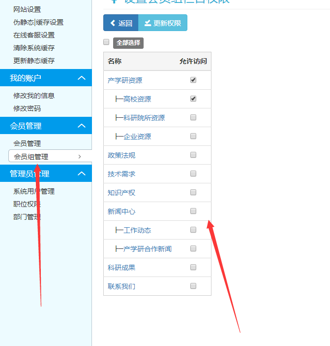 想知道這個會員組的權限是怎么用的,限制的是首頁導航欄訪問的模塊嘛?還是怎么的?求大神告知